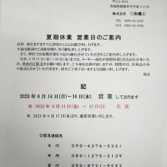 4. 夏期休業 営業日のお知らせ