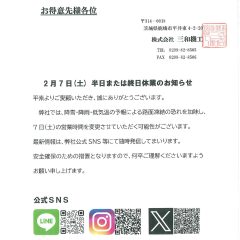 2020年12月27日(日)から2021年1月4日(月)まで年末年始休暇とさせていただきます。
